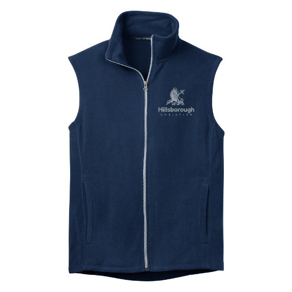 Port Authority Microfleece Vest. Vest color is navy. Embroidered with the white HCA logo on front.